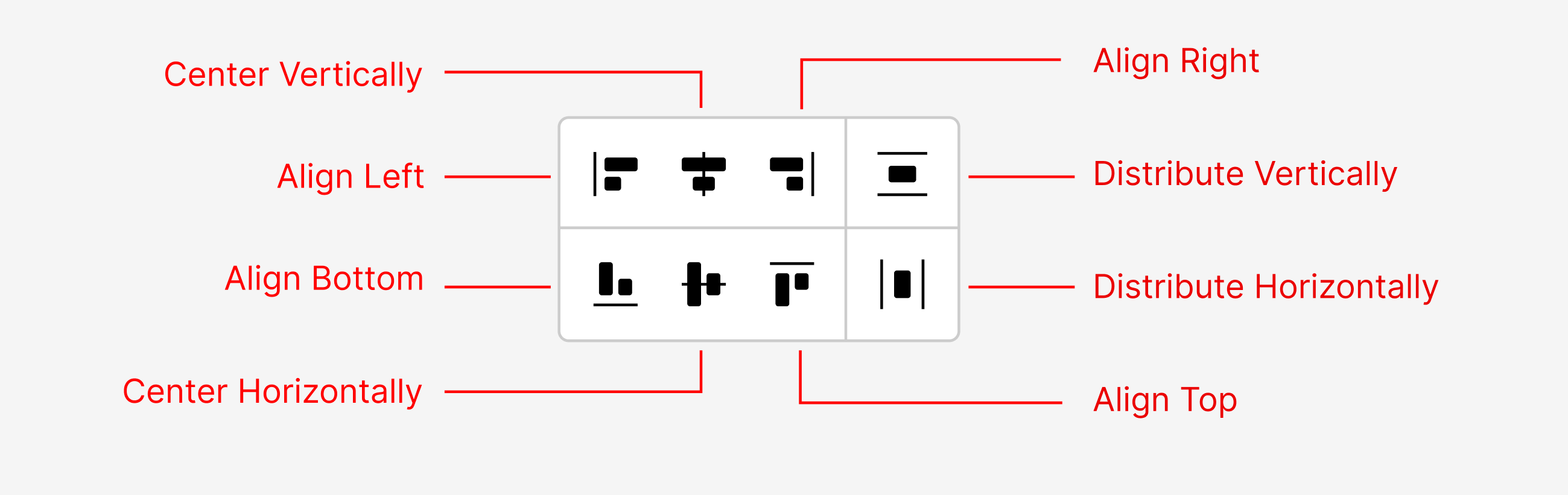 From the selection menu, click on the arrow beside the align icon to see all alignement options or click on the align icon to apply the last used option.