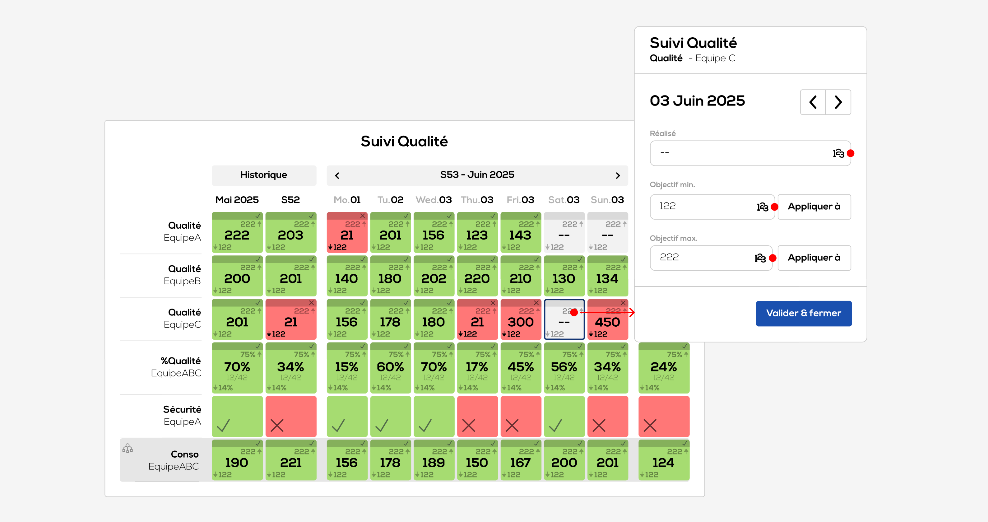 To edit an indicator value in the weekly table, click on the corresponding cell. Please note that only weekly values can be modified: historical and current month values are automatically calculated on the basis of values entered for the period.
